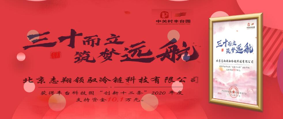 2021年12月1日,北京志翔領(lǐng)馭冷鏈科技有限公司(簡稱“志翔領(lǐng)馭”)收到批復(fù),榮獲豐臺科技園“創(chuàng)新十二條”2020年度支持獎勵資金10.1萬元。
